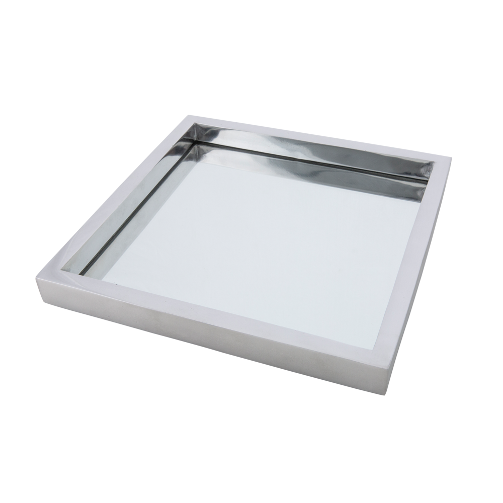 Bandeja quadrada com fundo de espelho e moldura em alumínio fundido. Ideal para servir um café, suco, ou ainda deixar em uma mesa ou bancada para valorizar a decoração da sua casa! Esta peça é assinada pela designer Solange Lopes.
