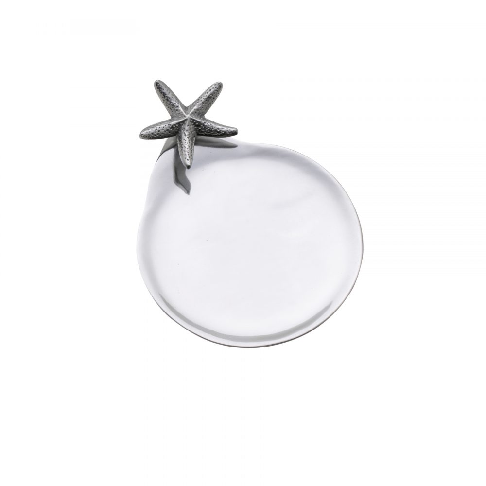 Base para jarra em alumínio fundido com aplique de estrela do mar. Super versátil! Além de ser linda, protege sua mesa e tolhas de manchas indesejadas de bebidas! Pode ser usada também como um pratinho para servir um petisco ou um docinho junto com um café da tarde! Peça feita manualmente pela designer Solange Lopes. Essa peça não pode ser colocada em máquina de lavar louça. Lave apenas com água, detergente neutro e esponja macia.