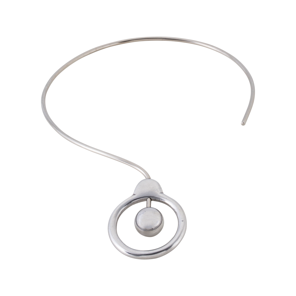 Colar gancho em alumínio fundido assinado pela designer Solange Lopes.