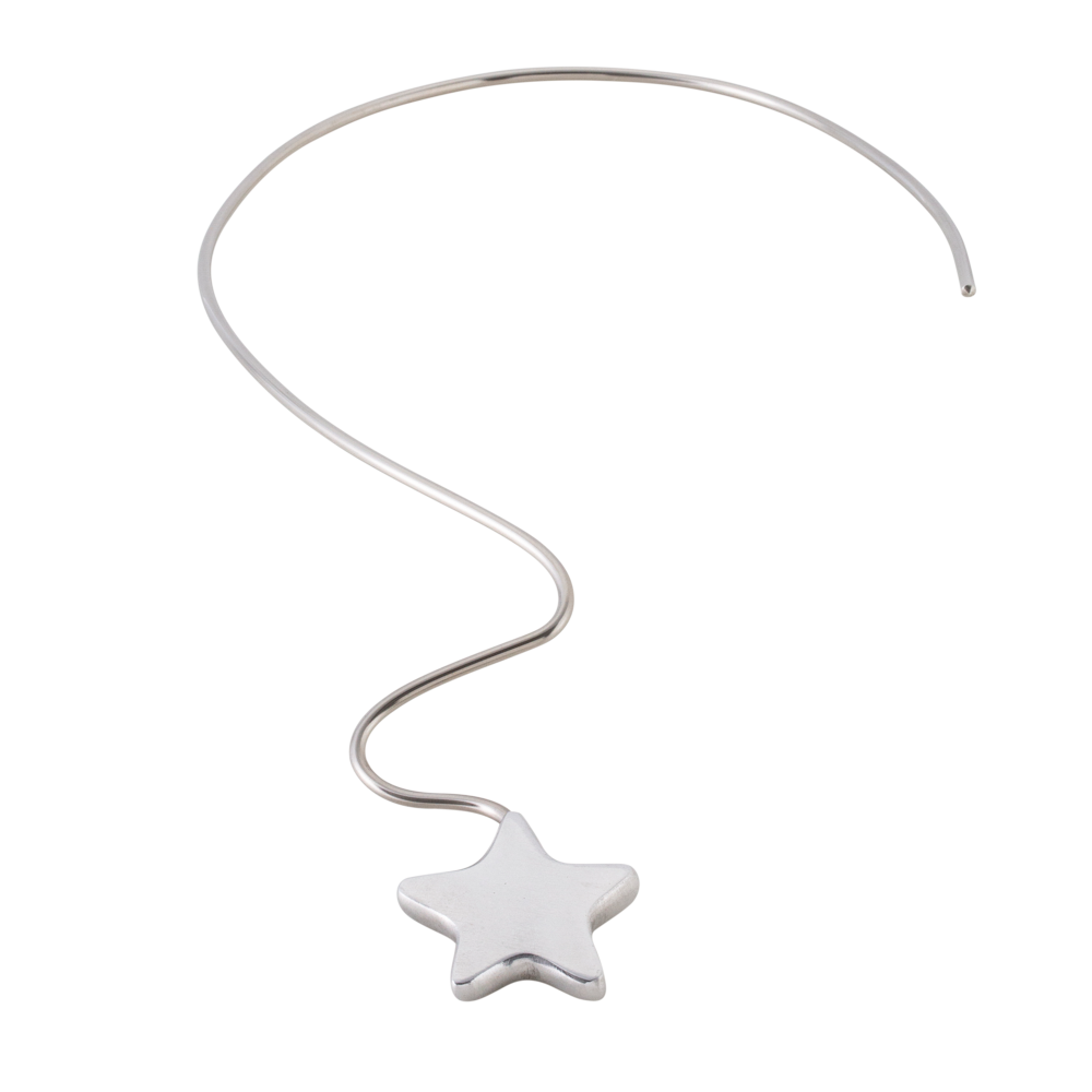 Colar gancho em alumínio fundido com aplique de estrela. Peça assinada pela designer Solange Lopes.