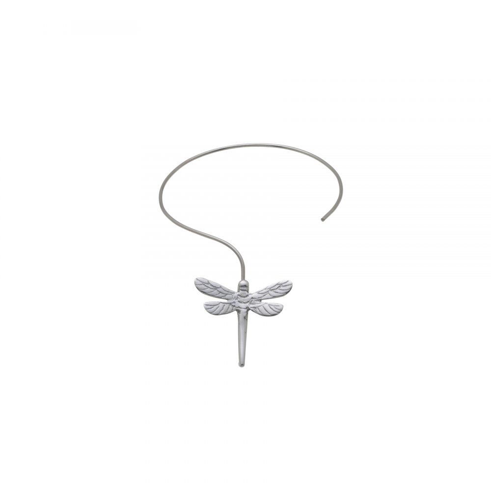 Colar em alumínio fundido no formato gancho com aplique de libélula na ponta. Peça linda feita a mão pela designer Solange Lopes. Para manter seu colar limpo basta lavar com água, detergente e esponja macia e depois secar bem! Não utilize nenhum produto abrasivo, pois pode riscar a peça.