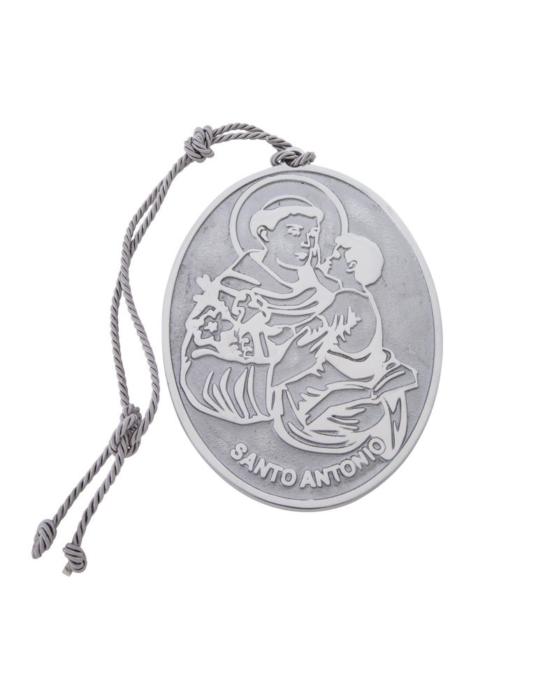 Medalha em alumínio fundido com a imagem de Santo Antônio e cordão cinza chumbo. Esta medalha pode ser pendurada em paredes, cabeceiras de cama, portas ou ainda colocada deitada em mesas de centro ou mesas laterais! Use sua criatividade! E crie seu cantinho especial de oração! Esta peça é assinada pela designer Solange Lopes.