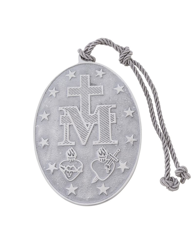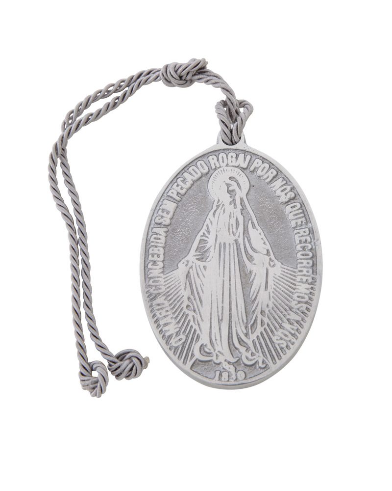 Medalha decorativa em alumínio fundido com imagem da Medalha Milagrosa (frente e verso) com cordão cinza chumbo. Esta medalha pode ser pendurada em paredes, cabeceiras de cama, portas ou ainda colocada deitada em mesas de centro ou mesas laterais! Use sua criatividade! E crie seu cantinho especial de oração! Esta peça é assinada pela designer Solange Lopes.