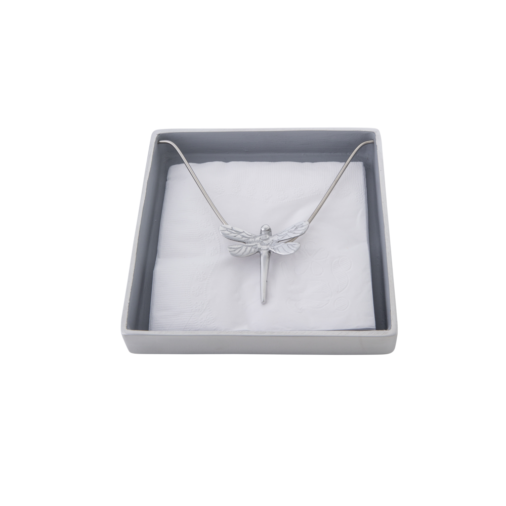 Porta guardanapo em alumínio fundido com tema de Libélula. Próprio para guardanapo de papel grande (16x 16cm). Lindo e prático para o dia a dia! Assinado pela designer Solange Lopes.