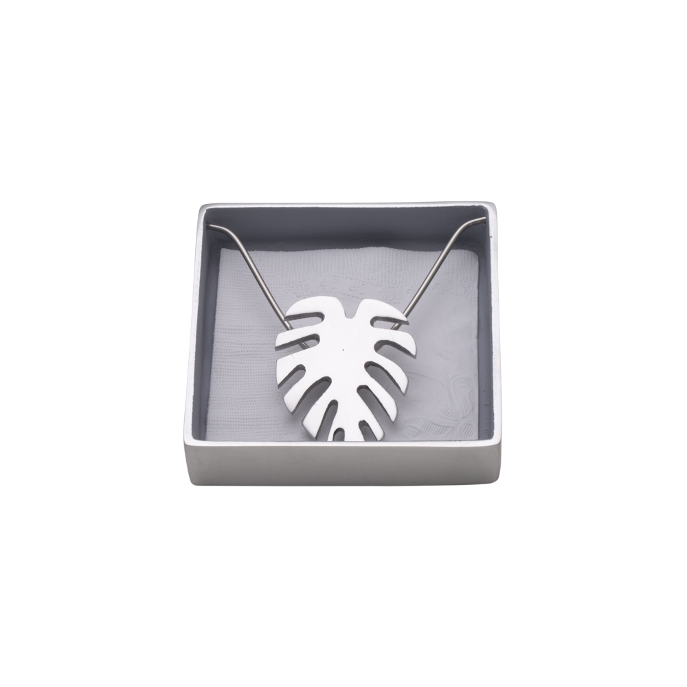Porta guardanapo em alumínio fundido com tema da folha Costela de Adão. Próprio para guardanapo pequeno (12x 12cm). Lindo e prático para o dia a dia! Assinado pela designer Solange Lopes.